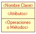 en UML: Un rectángulo dividido verticalmente en tres secciones.